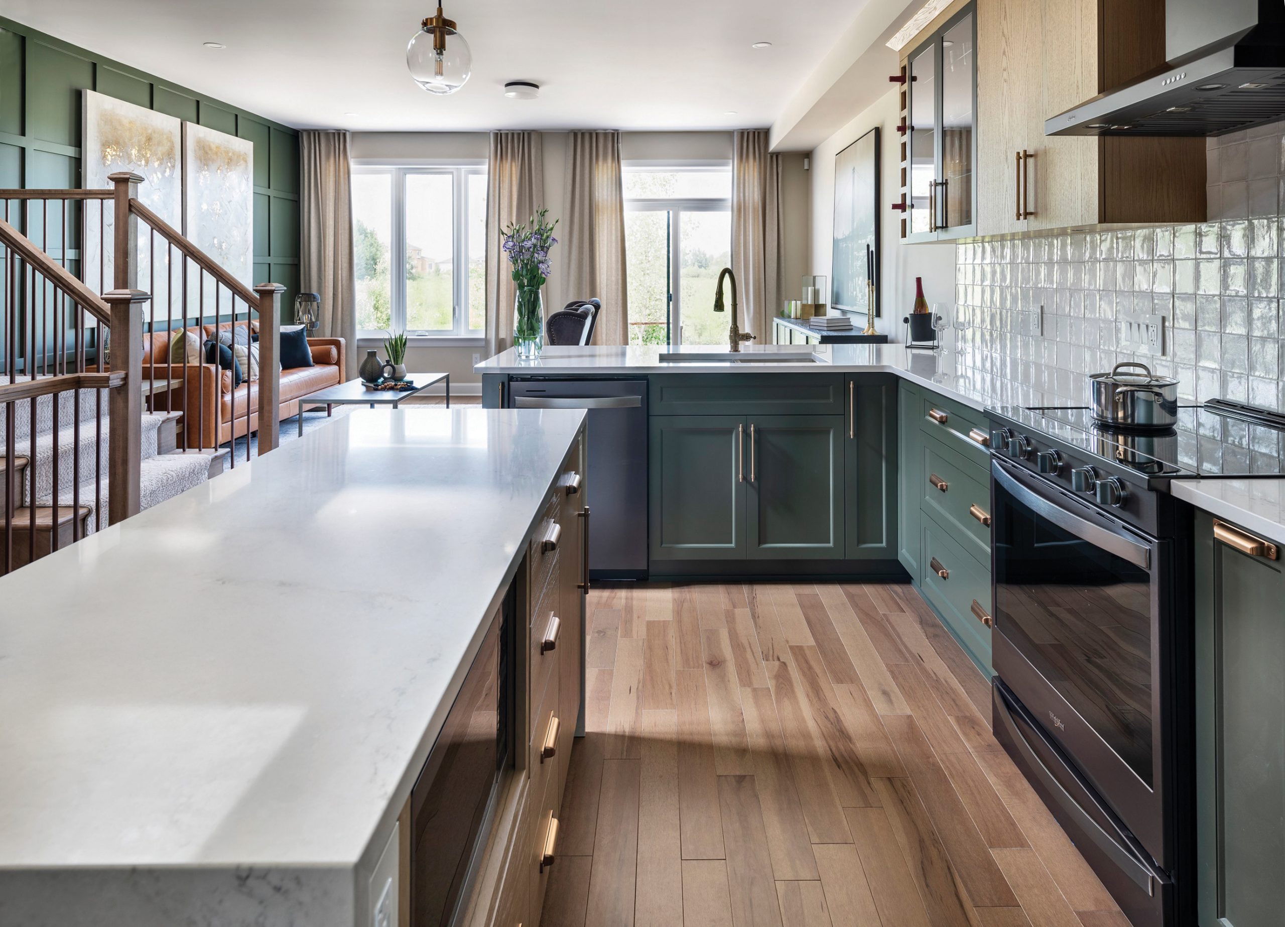These cabinets feature Osgoode doors in a premium lacquer Chimichurri painted finish.