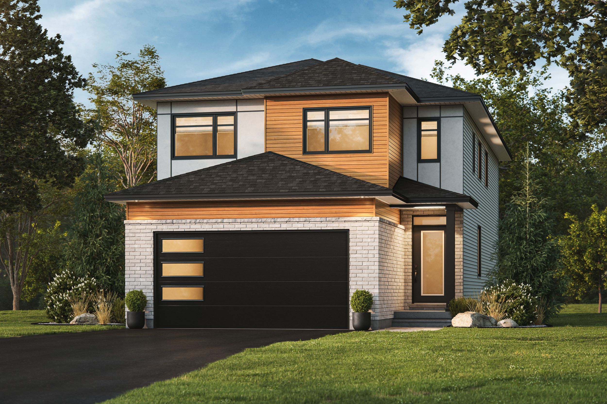 - Traditional elevations featuring combined contemporary finishes