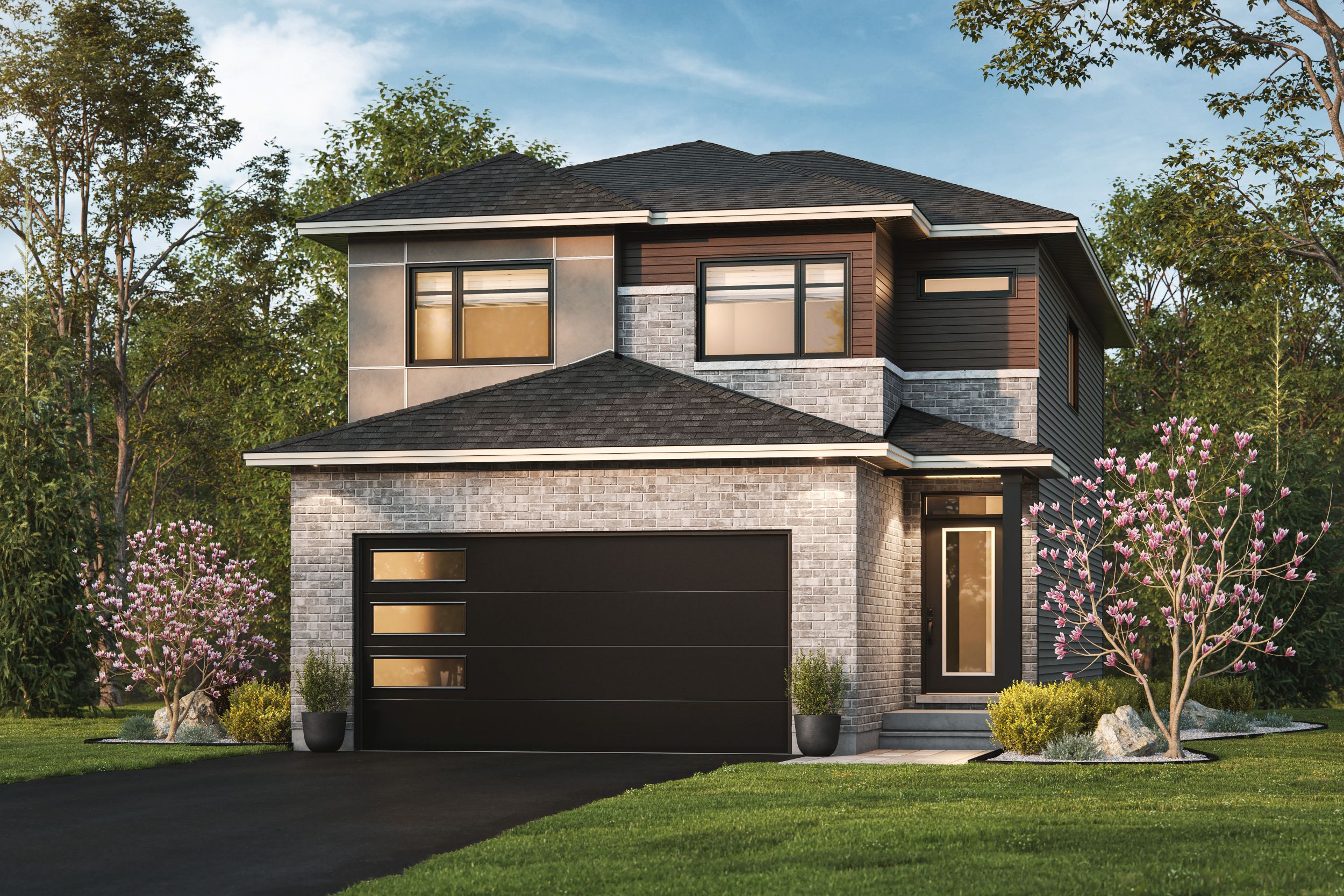 - Traditional elevations featuring combined contemporary finishes